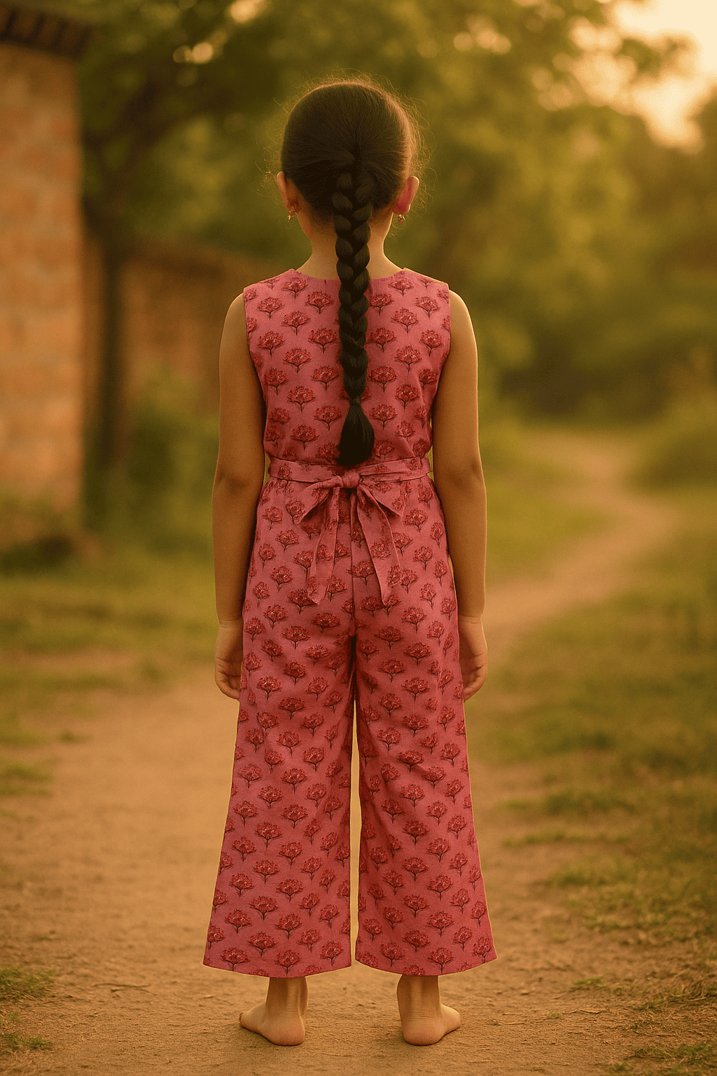 Traditional Indian fusion wear for girls featuring this vibrant jumpsuit with floral prints in shades of pink, blending modern style with cultural charm. Perfect for festive occasions, offering comfort and elegance pure cotton.