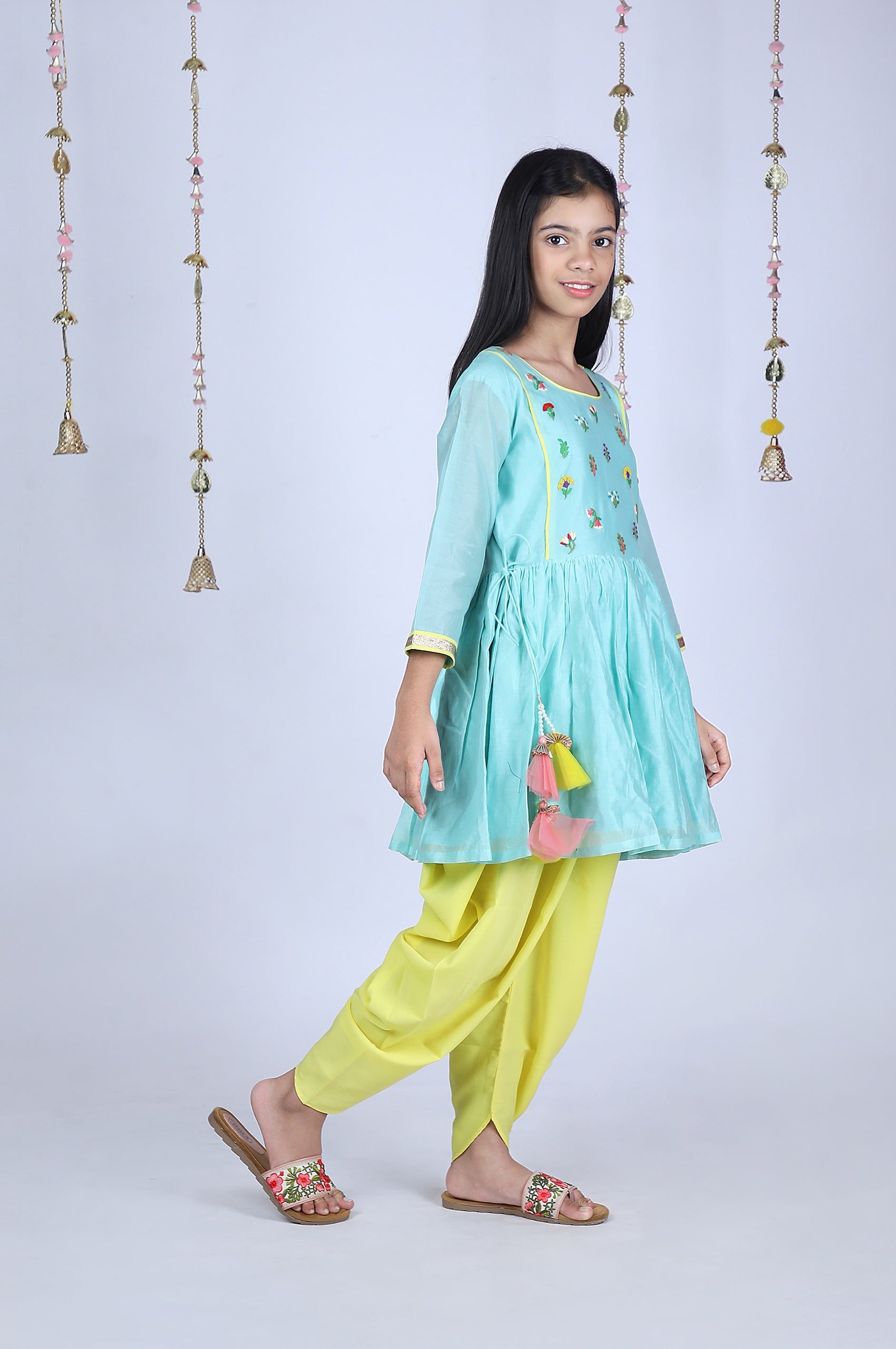 Floral Hand Embroidered Chanderi Peplum and Dhoti Set(Sea Green) Floral Hand Embroidered Chanderi Peplum and Dhoti Set(Sea Green)