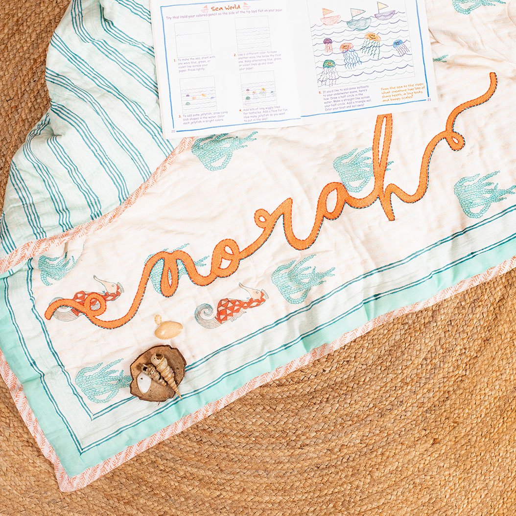 The Seahorse – Personalised Handblock Print Reversible Cotton Quilt
